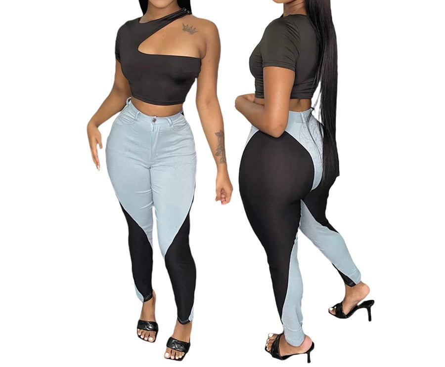 Sexy pair of pants with mesh and Jean material